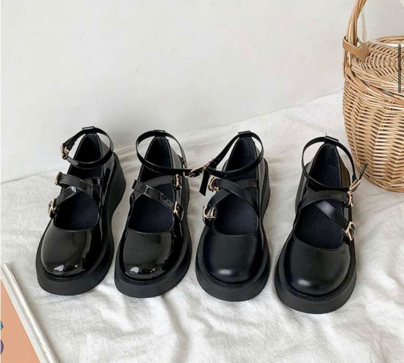 秋 冬 レディース 靴 くつ ローファー パンプス 光沢あり 光沢なし 2種 22.5cm 23cm 23.5cm 24cm 24.5cm レトロ ワンラインバックル ソリッドカラー 韓国 きれいめ プチプラ YN-8-20 | dress_sugar_moon