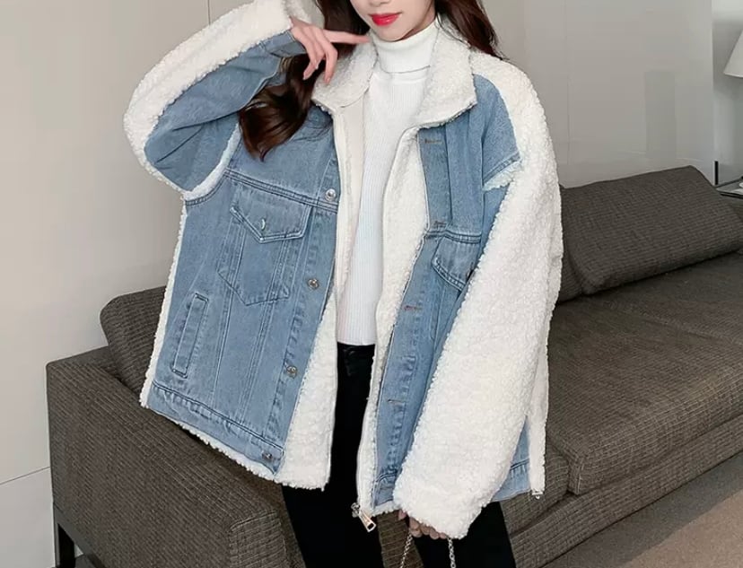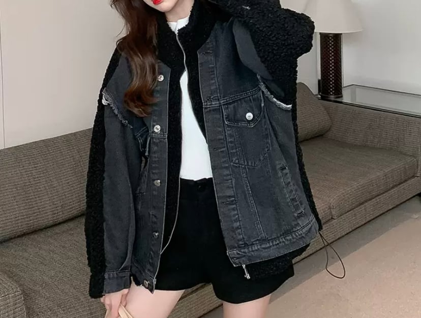秋 冬 アウター ジャケット コート デニム ボアコート もこもこ 防寒 暖かい カジュアル ハイネック 白 黒 2カラー 韓国 きれいめ プチプラ YN-11-28 | dress_sugar_moon