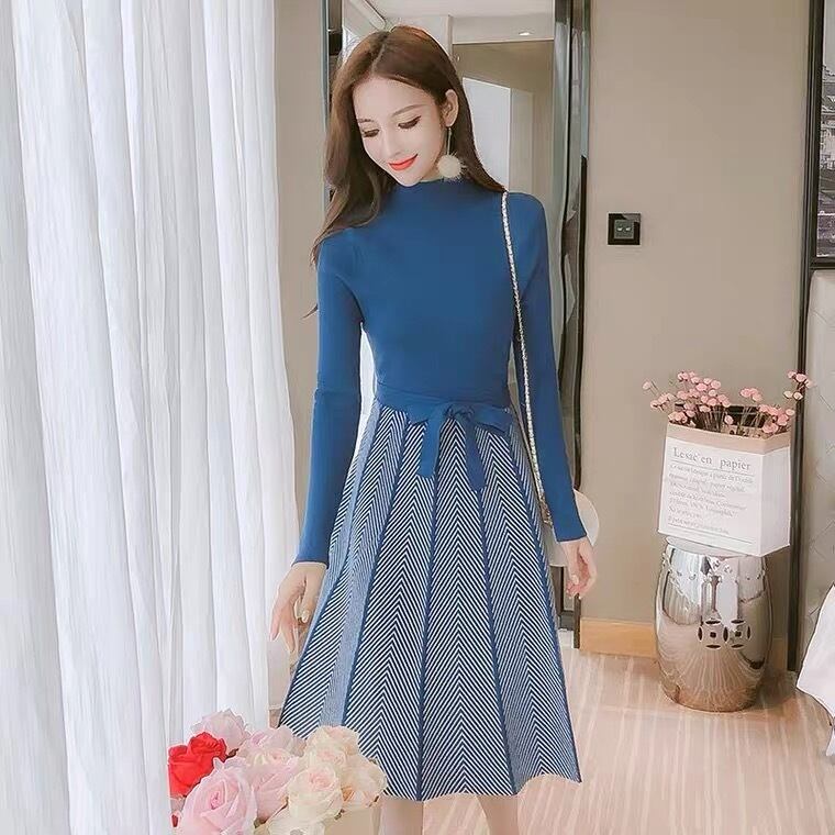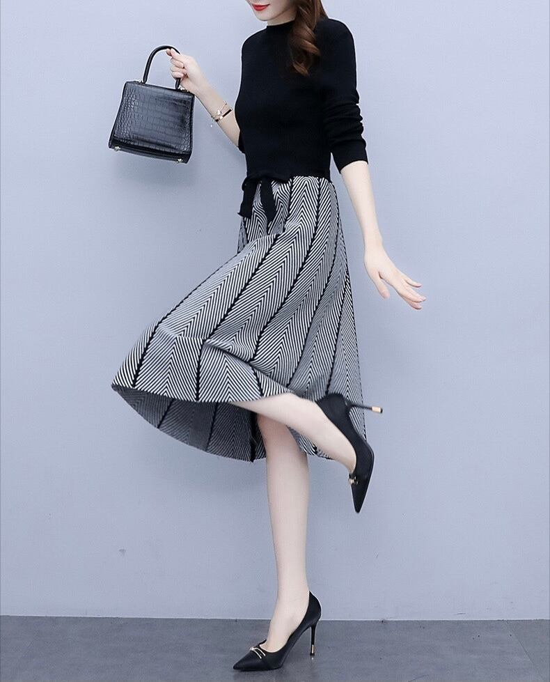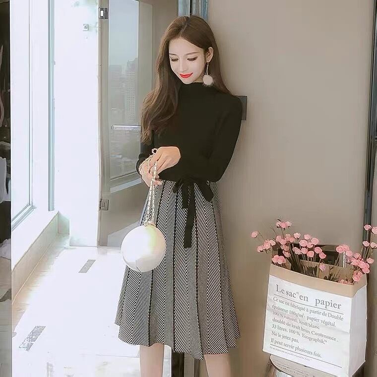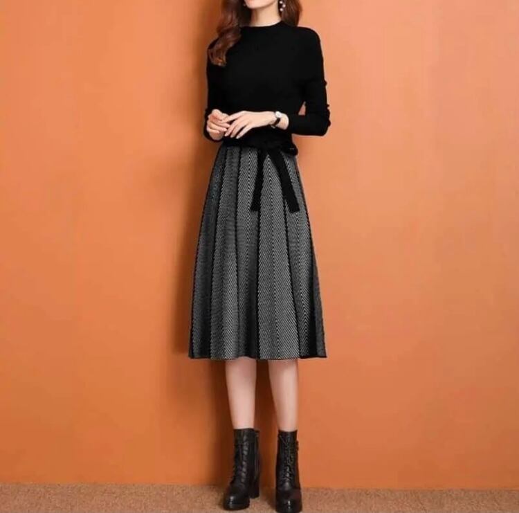 秋 冬 レディース タイト ニット ニットトップス スカート ハイウエスト フロントボタン ミドル丈 プリーツ フェミニン おしゃれ 韓国 きれいめ プチプラ AO-3-32 | dress_sugar_moon